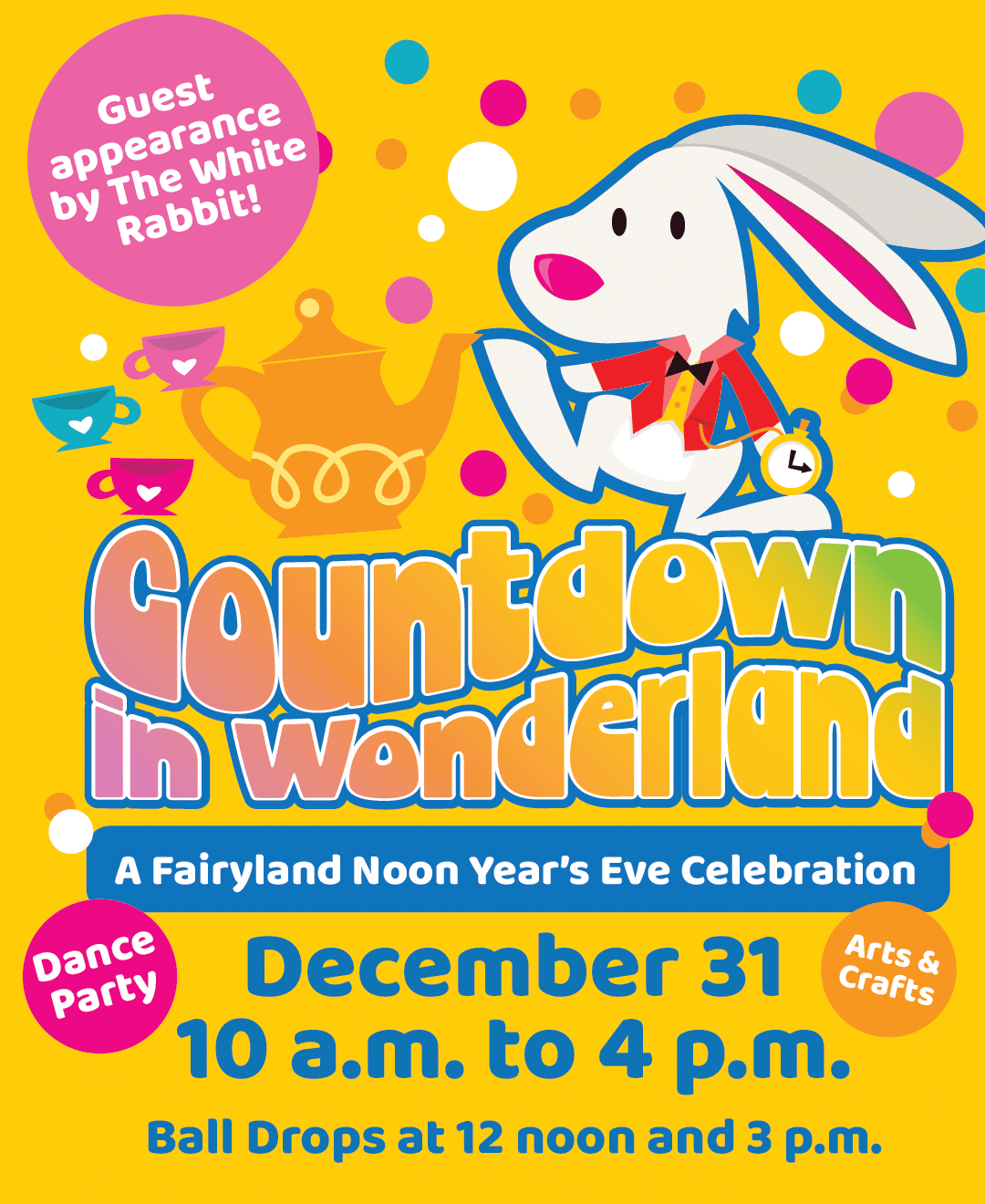 Kiddos love a New Year’s countdown. Grownups love bedtime staying on schedule. Fairyland’s Noon Year’s Eve is the best of both worlds, wrapped in Alice in Wonderland whimsy! Ring in 2026 with a proper daytime countdown complete with a festive ball drop, joyful surprises, and plenty of time to still be tucked in before dark.